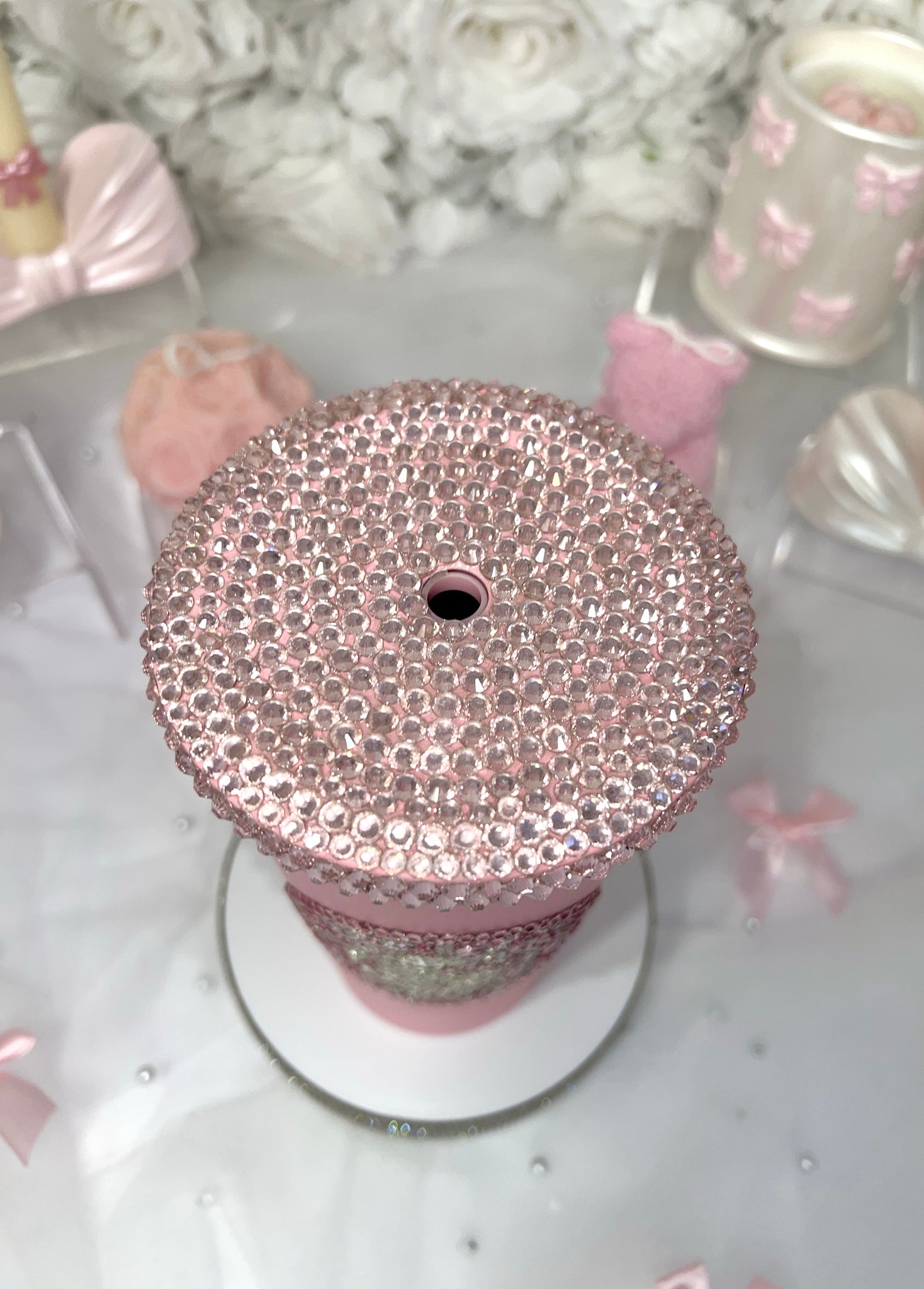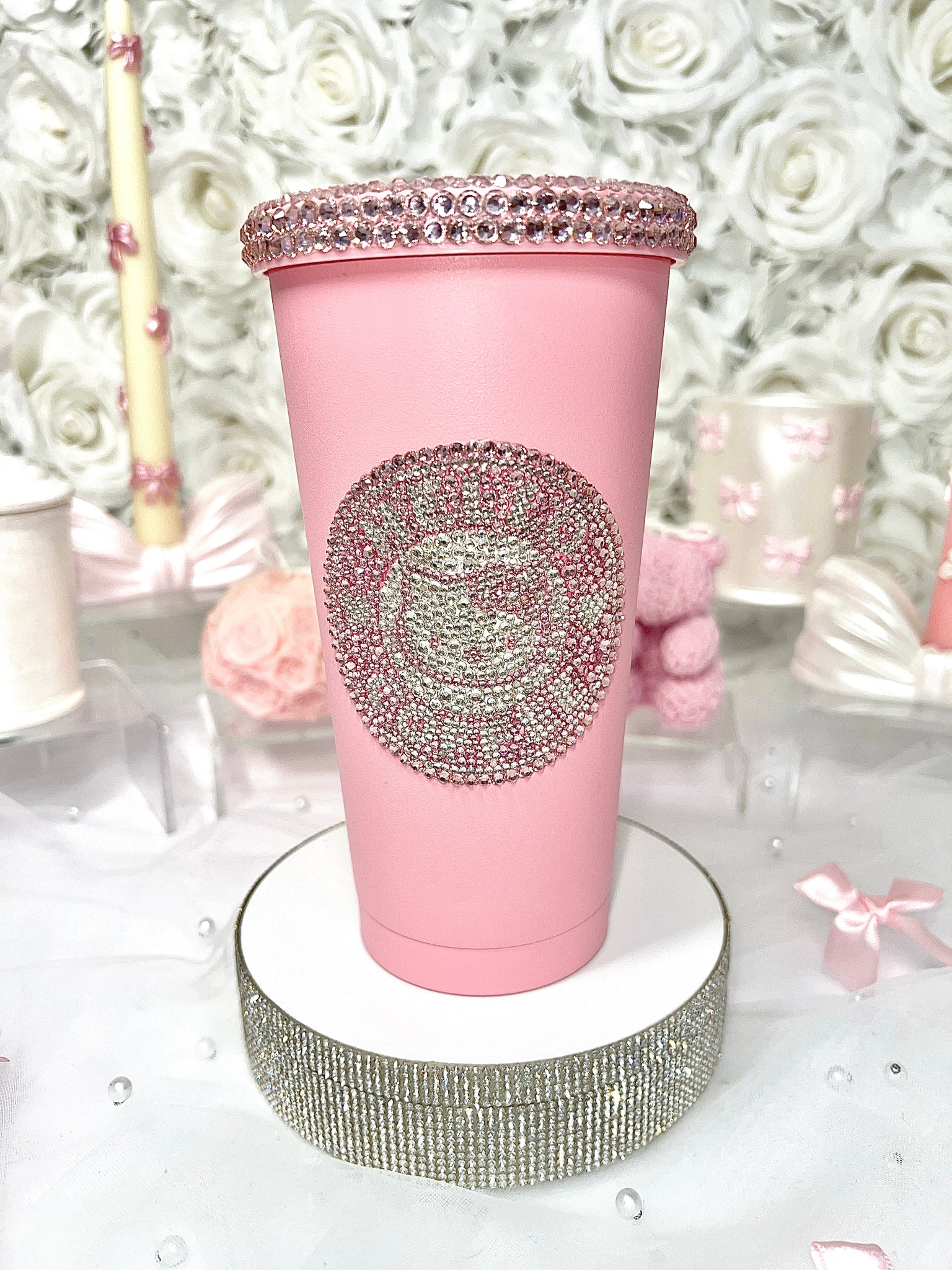 PINK 20oz Stainless Steel Tumbler with LUXE pink and crystal rhinestones.